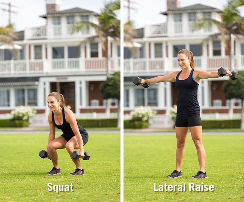 - Dřep + boční zvednutí : 10 – 12 opakování